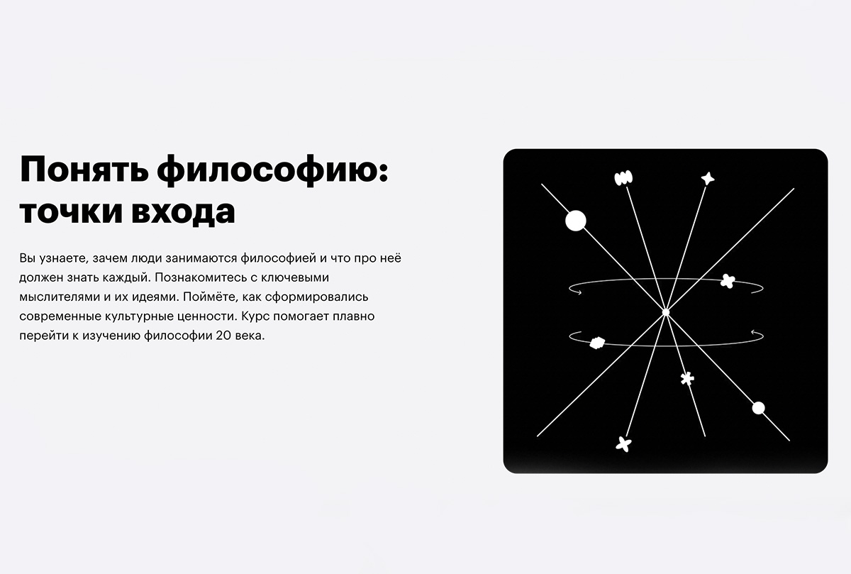 Курс от Skillbox «Понять философию: точки входа» о том, как формировались современные культурные ценности и какой вклад внесли известные мыслители в развитие общества. Перечислим основные моменты, которые затрагиваются на курсе: